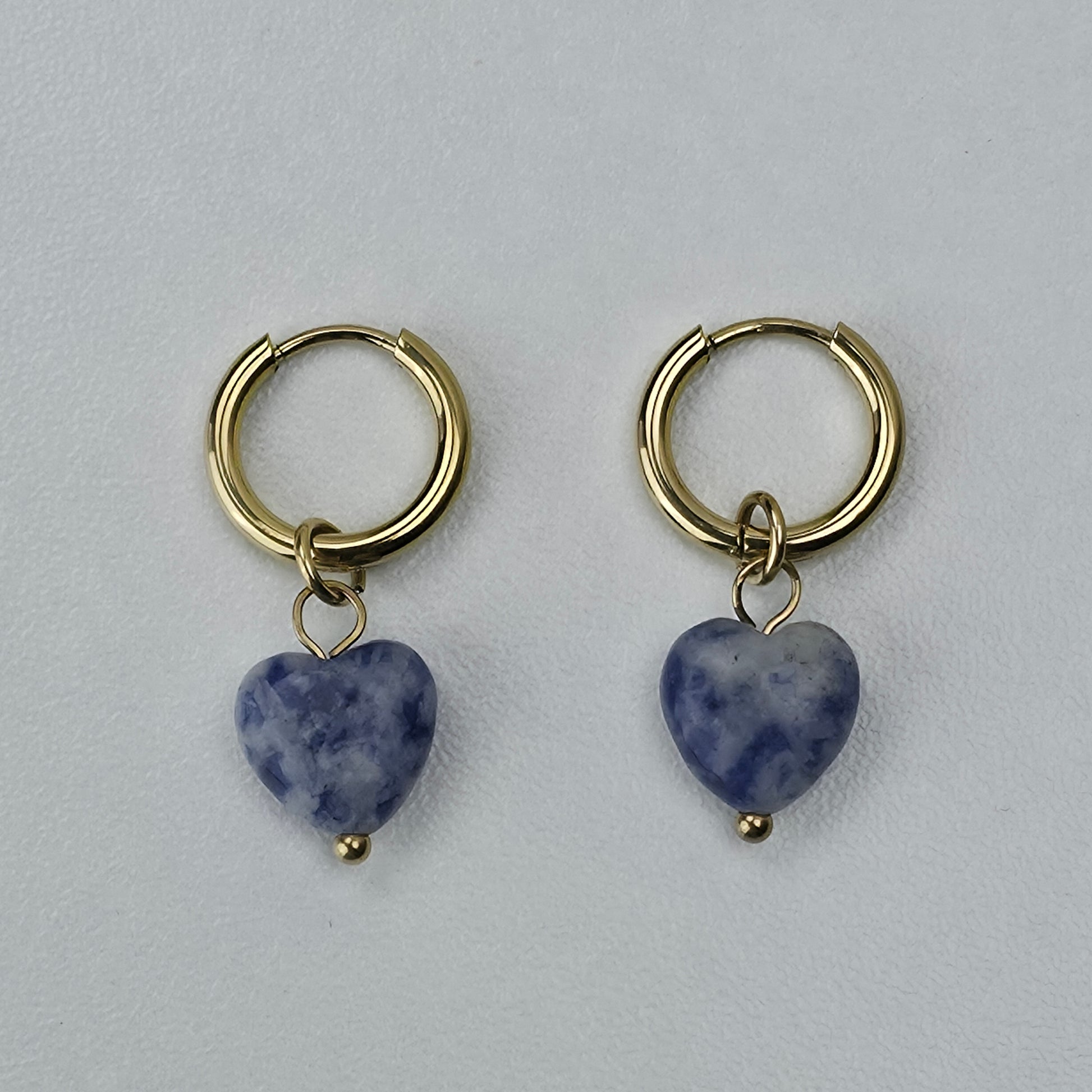 Waarom jij dit gaat waarderen: • Unieke blauwe hartvormige steen met natuurlijk marmerachtig patroon • Goudkleurige hoops met elegante uitstraling • Tijdloos en speels design dat gemakkelijk te combineren is • Lichtgewicht en comfortabel om te dragen • Elk paar heeft een unieke steen — geen twee zijn exact hetzelfde