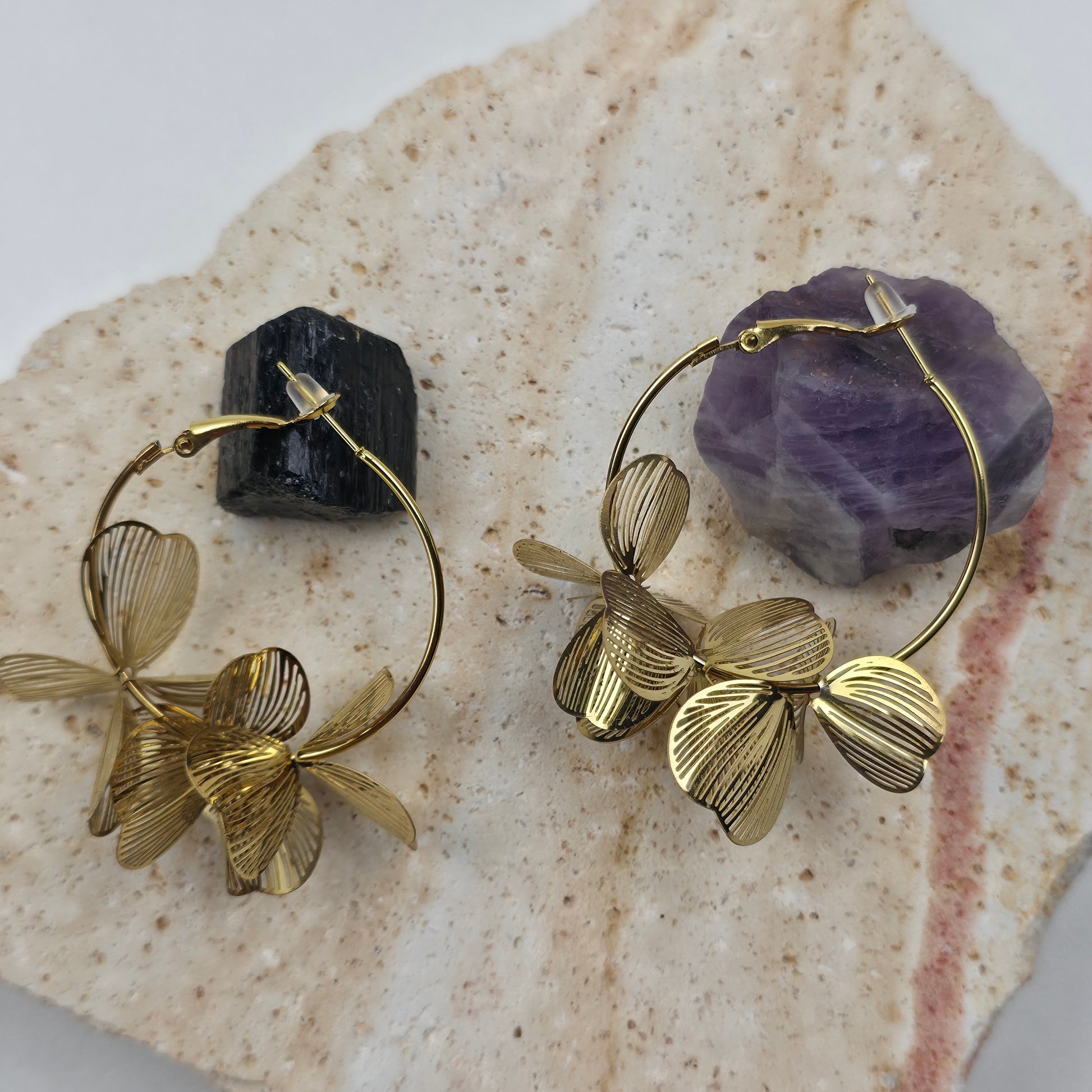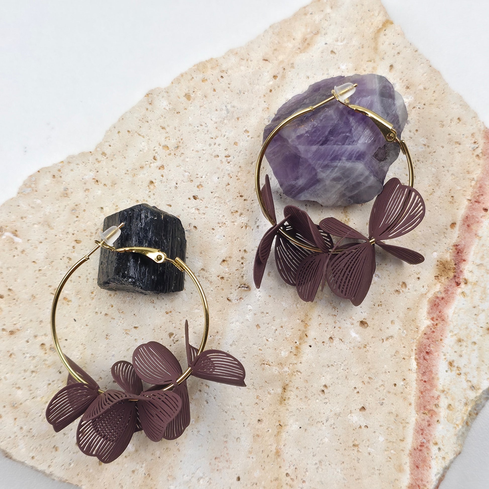 Waarom jij dit gaat waarderen: • Uniek bloemdesign met moderne paarse kleur • Glanzende goudkleurige hoops voor een stijlvolle basis • Diameter van 5 cm — subtiel en toch opvallend • Lichtgewicht en comfortabel om te dragen • Perfect voor casual en feestelijke looks