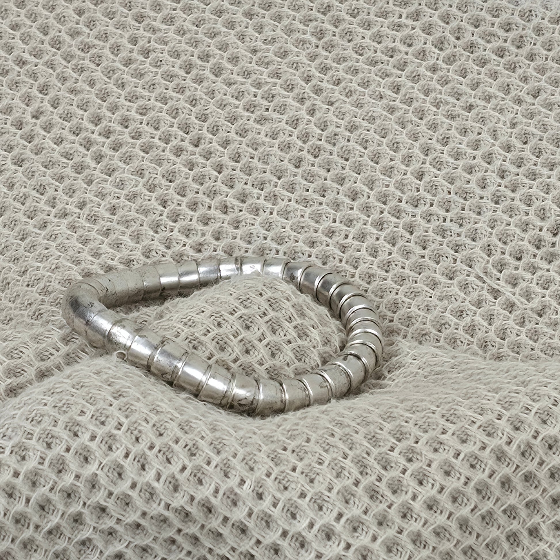 Introductie: De Hevi Elastische Armband is een stijlvol en tijdloos accessoire dat bestaat uit losse zilverkleurige segmenten die met een elastische band verbonden zijn. Dankzij het flexibele ontwerp is deze armband eenvoudig om en af te doen en comfortabel om de hele dag te dragen.
