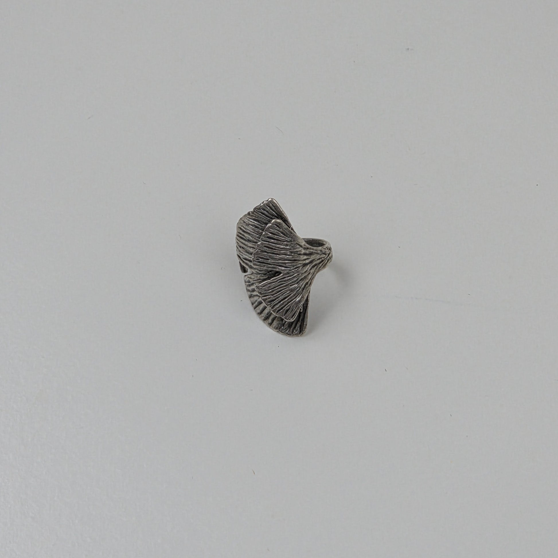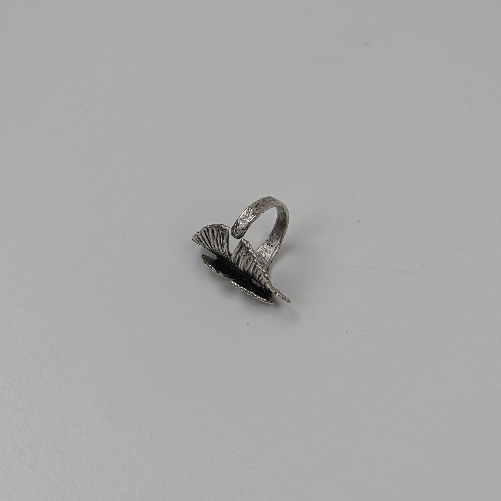 Ontdek de tijdloze elegantie van de Hevi Ginkgo Leaf Ring. Deze handgemaakte ring is geïnspireerd op het iconische ginkgoblad, symbool van kracht, wijsheid en lang leven. De verzilverde afwerking met subtiele vintage look benadrukt de nerven en details van het blad, waardoor dit sieraad een natuurlijke en unieke uitstraling krijgt. Dankzij de verstelbare maat is de ring geschikt voor iedereen.