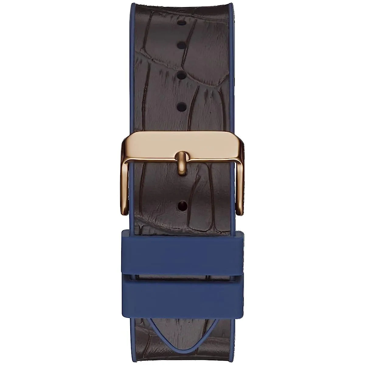 Specificaties: • Materiaal horlogeband: leer • Materiaal horlogekast: roestvrij staal • Bewegingstype: quartz • Kristal: mineraalglas • Inclusief: merkdoos • Soort sluiting: gesp • Kleur van de plaat: blauw • Kleur horlogekast: roségoud • Kleur van de band: bruin • Diameter van de horlogekast: 43 mm • Waterdichtheid: spatwaterdicht
