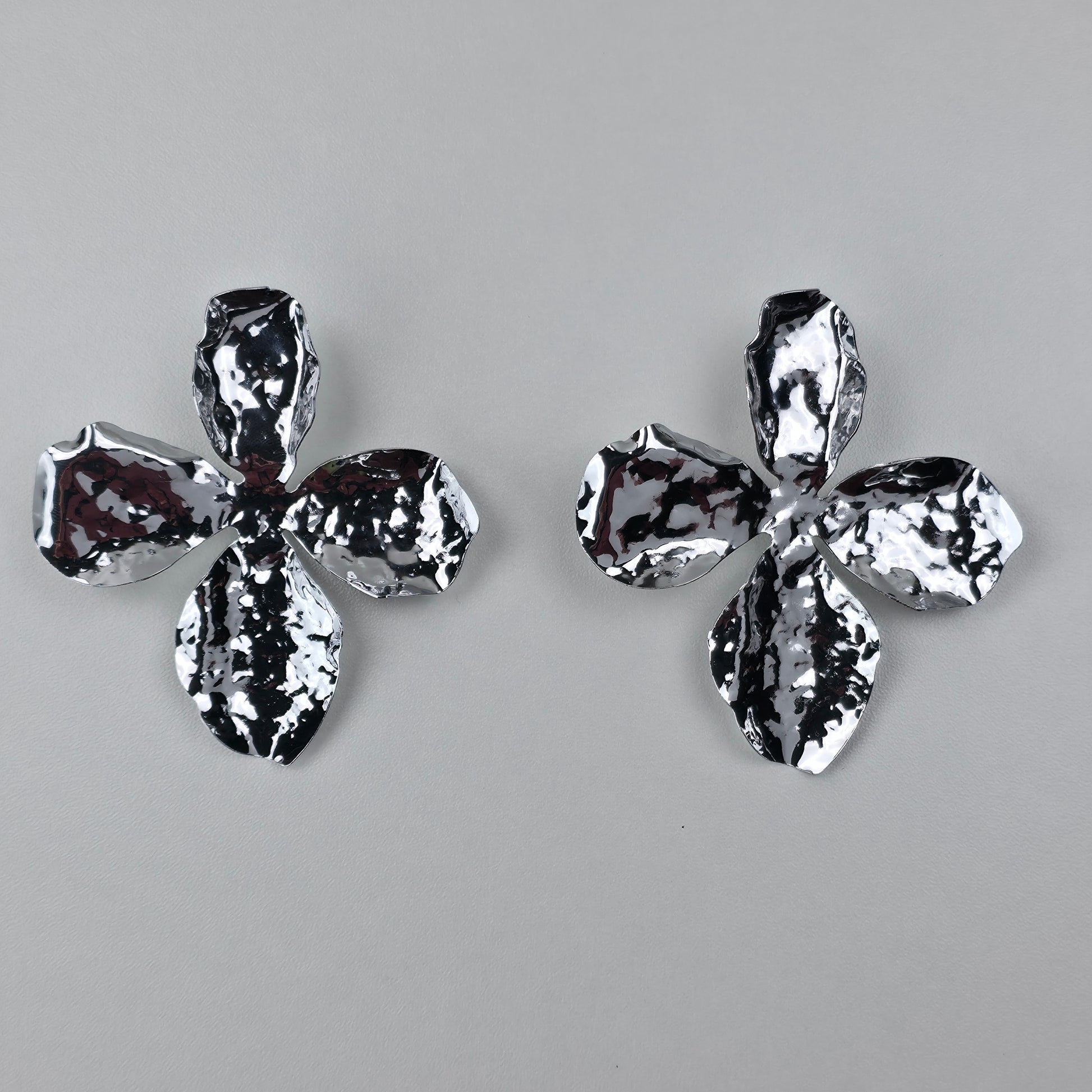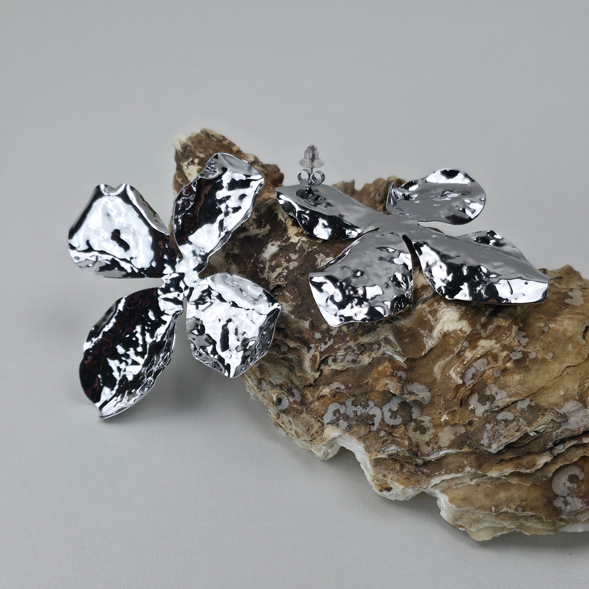 Introductie: Deze Zilverkleurige Bloem Oorbellen combineren een artistiek gehamerd oppervlak met een elegante bloemvorm. De reflecterende afwerking en het sculpturale design zorgen voor een opvallend statement bij elke look — perfect voor bijzondere gelegenheden of om je dagelijkse outfit te verheffen.